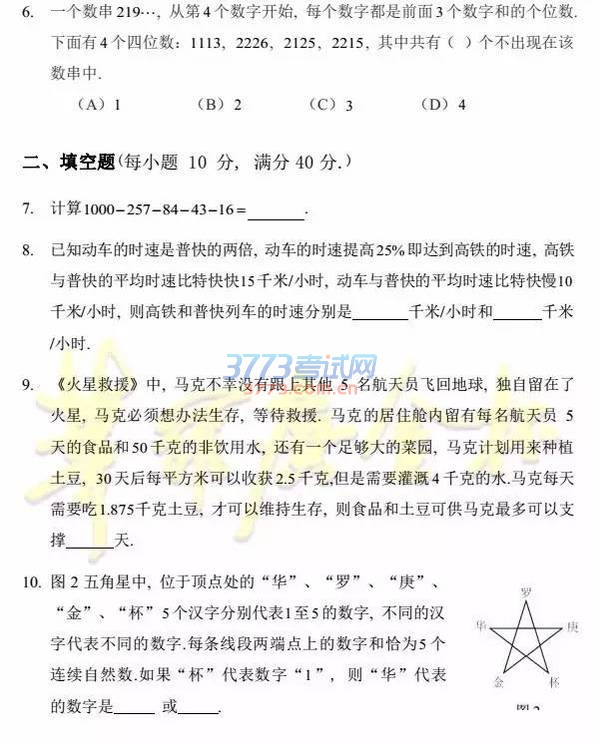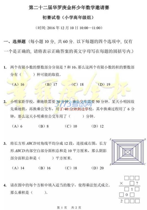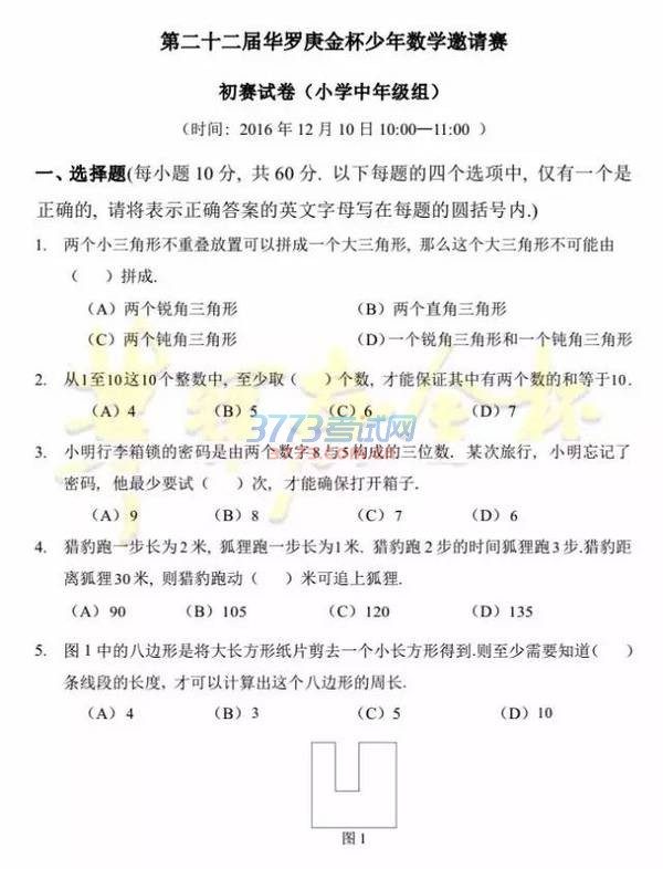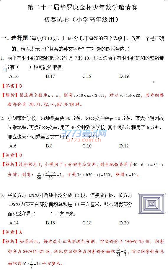 春蕾杯,华杯赛,都在本周六进行,在考场紧张作答,家长在考场外紧张等候!现在考试结束了,小编搜集了华杯赛的试题和答案解析,在此分享给大家!