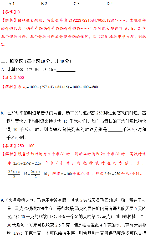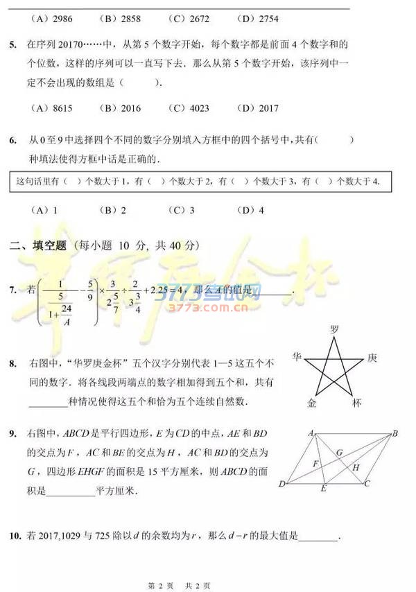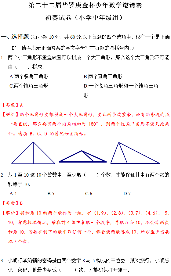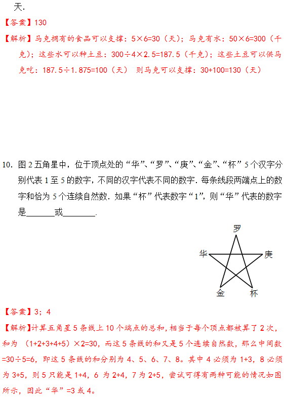 注:试题来源于华杯赛官网,答案来源于奥数网,非官方答案,仅供参考