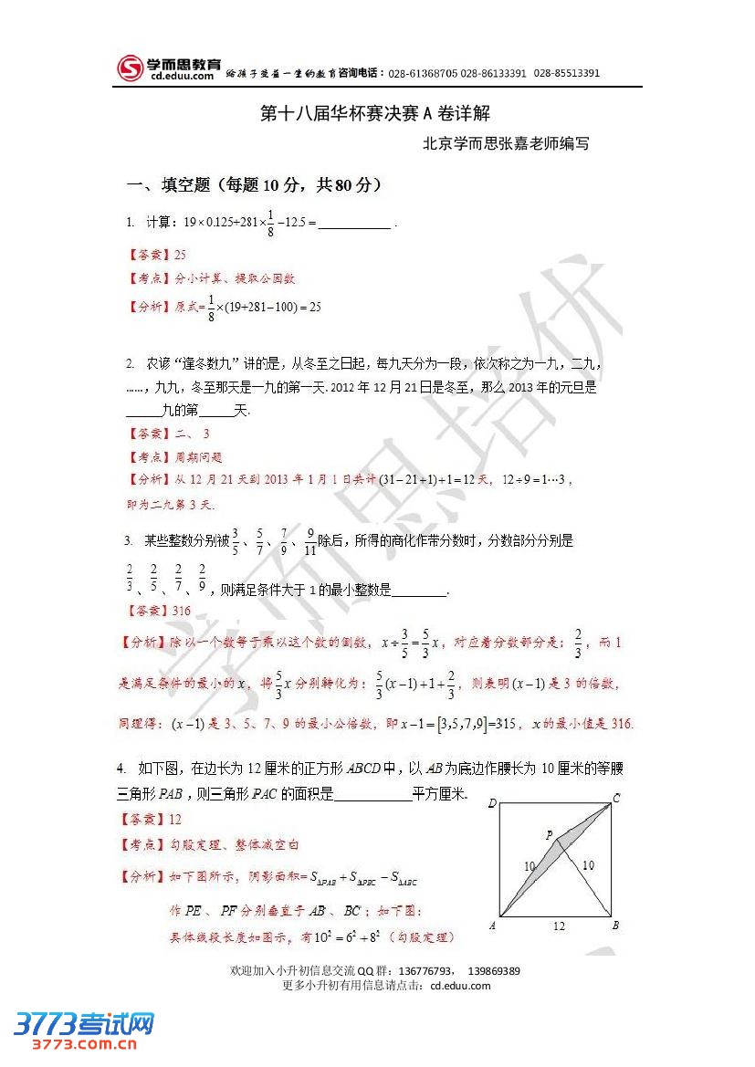 3773考试网 - 中考网 - 华杯赛 - 正文