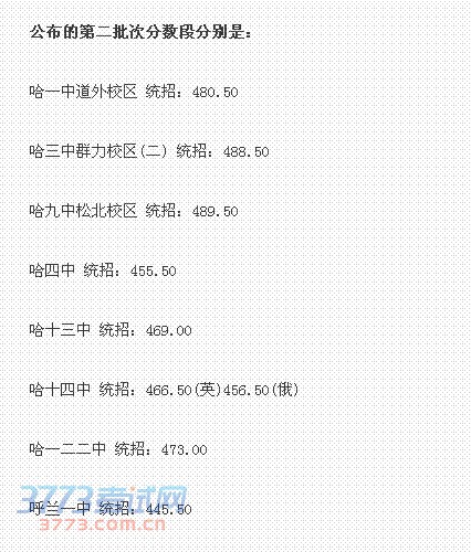 2014哈尔滨省重点高中统招择校录取分数线均已公布