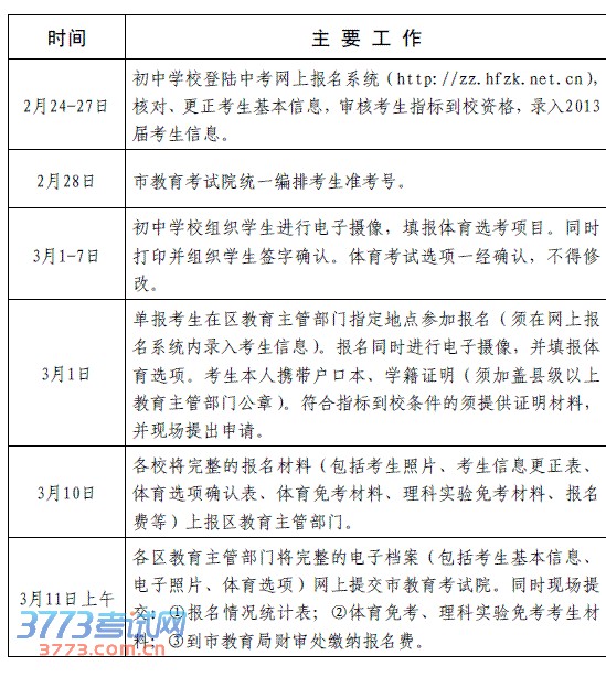 2014年合肥中考报名阶段工作时间安排