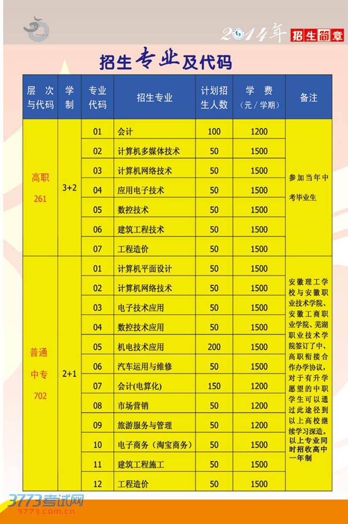 2014秋季安徽理工学校招生简章