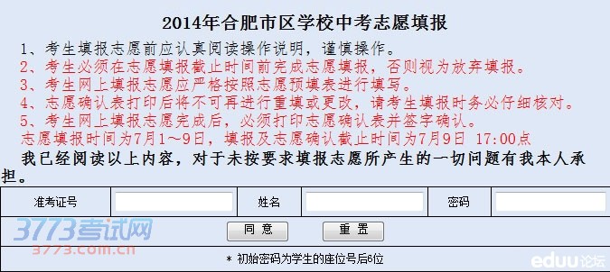 图8 “合肥市高中阶段招生志愿填报系统”->考生登录界面