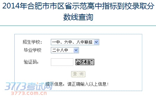 2014年合肥市市区省示范高中指标到校录取分数线查询