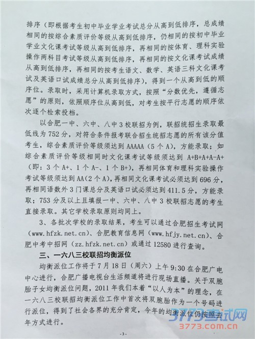 以合肥一中、六中、八中3校联招为例,联招统招生录取最低线为752分,对符合条件报考联合招生统招志愿的所有该分值考生,综合素质评价等级须达到AAAAA(5个A),方能录取;