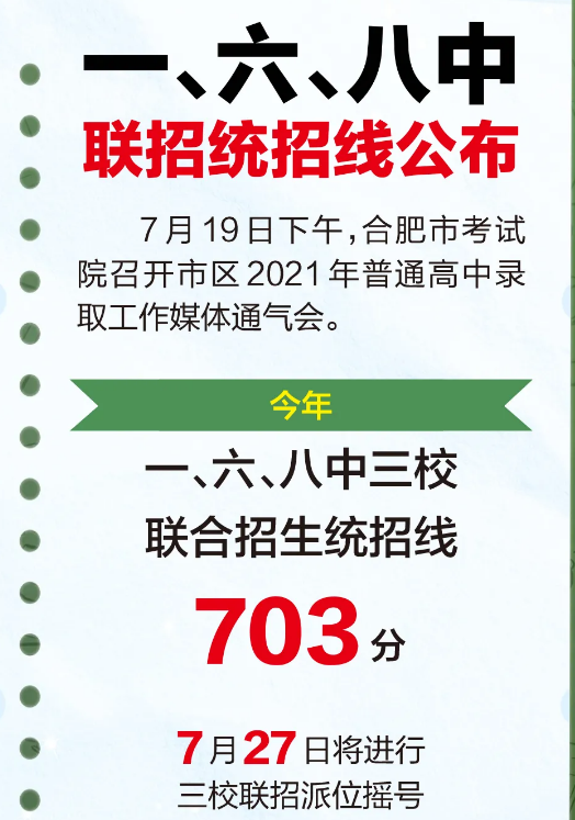 2021年安徽合肥一、六、八中三校联招分数线公布,希望对同学们有所帮助,仅供参考。