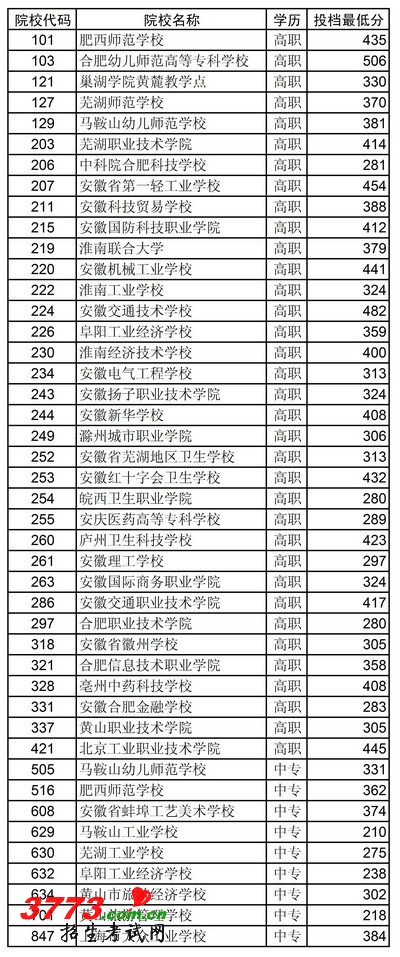 合肥幼儿师范高等专科学校2012五年专录取分数线