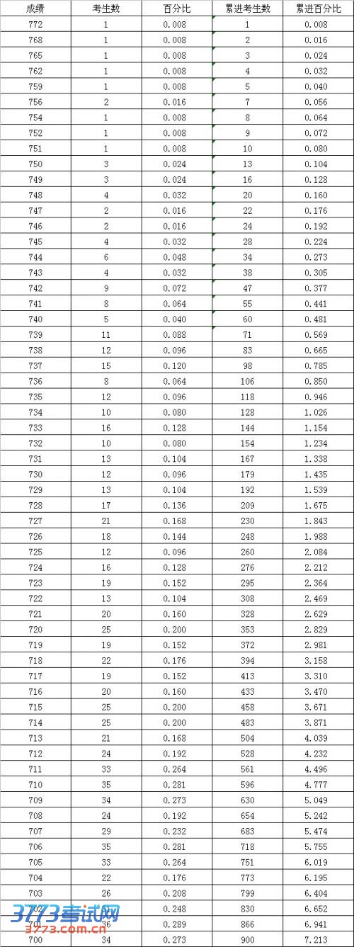 2013年庐江中考成绩已经公布!最高分是772分,如下是2013年庐江中考成绩分档表: