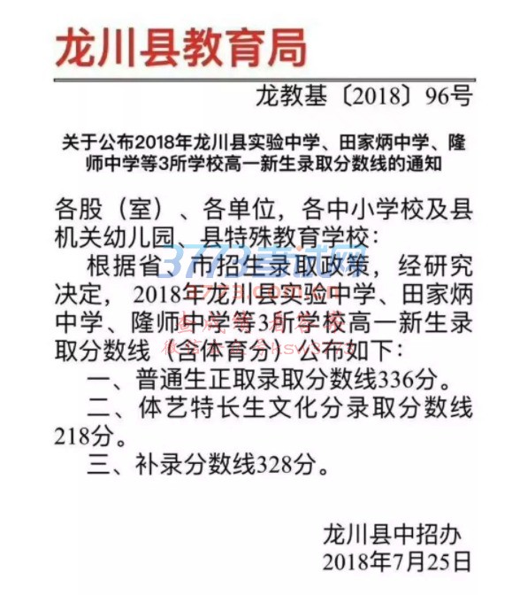 2018年龙川县普通高中第二批录取分数线正式出炉!