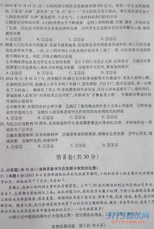 2015菏泽中考政治历史试题及答案