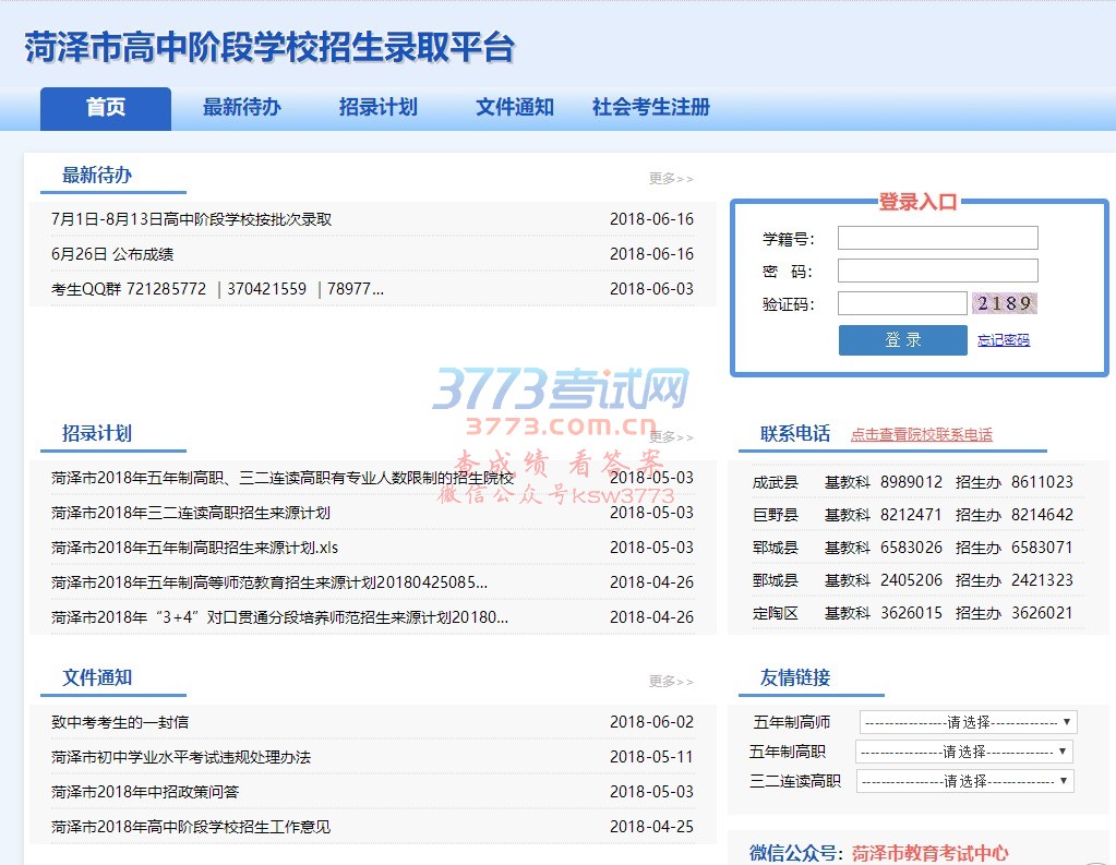 6月26市教育局发布成绩,考生登录菏泽中招平台网站(http://www.hzzzpt.com)或到毕业学校进行查询。