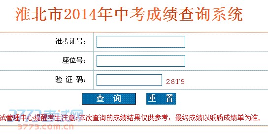 2014淮北中考成绩查询系统:淮北市招生考试信息网