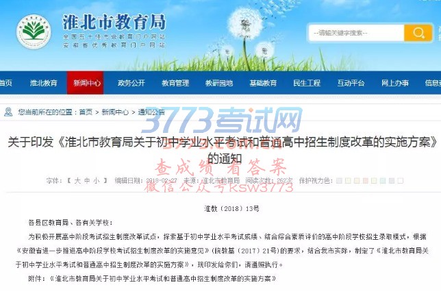 淮北市中考改革方案来了!