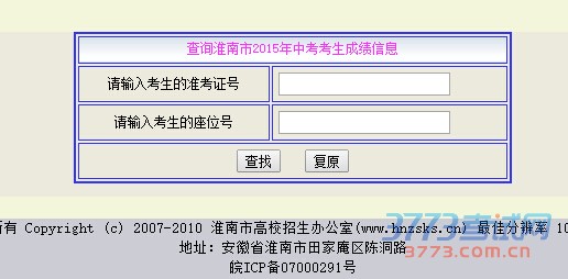淮南招生考试网2015淮南中考成绩查询网站