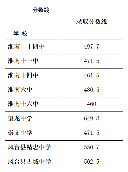 1、普通高中录取控制分数线为 460 分(不含寿县考生)。