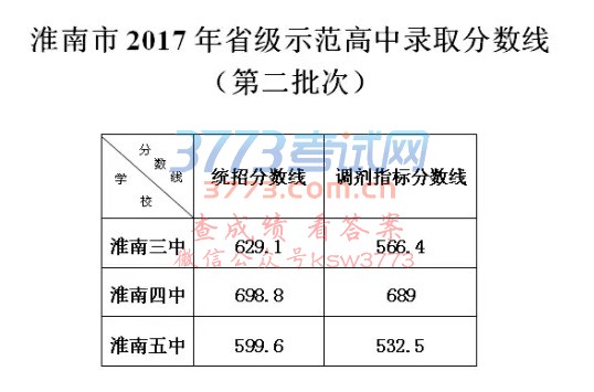 淮南市2017年省级示范高中录取分数线(第二批次)已出!
