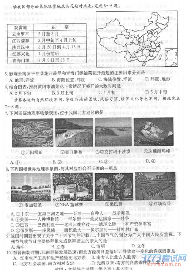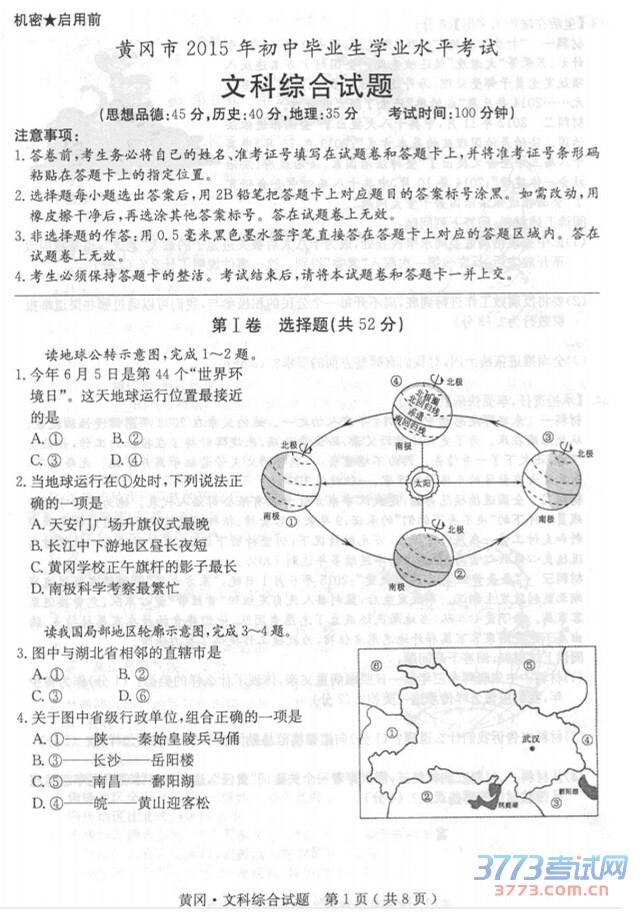 公布襄阳中考试题、答案和中考作文。祝各位考生都能取得好的成绩。2015年湖北黄冈中考试题:中考文综试题(图片版):