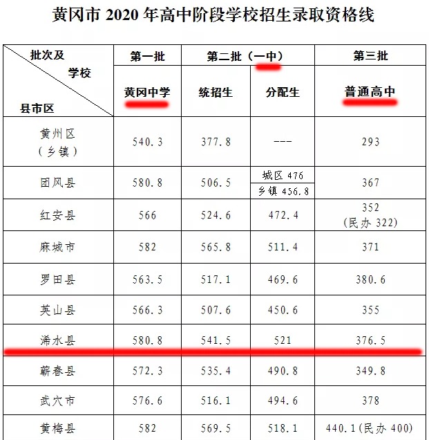 黄冈市教育局关于公布2020年高中阶段学校招生录取资格线的通知