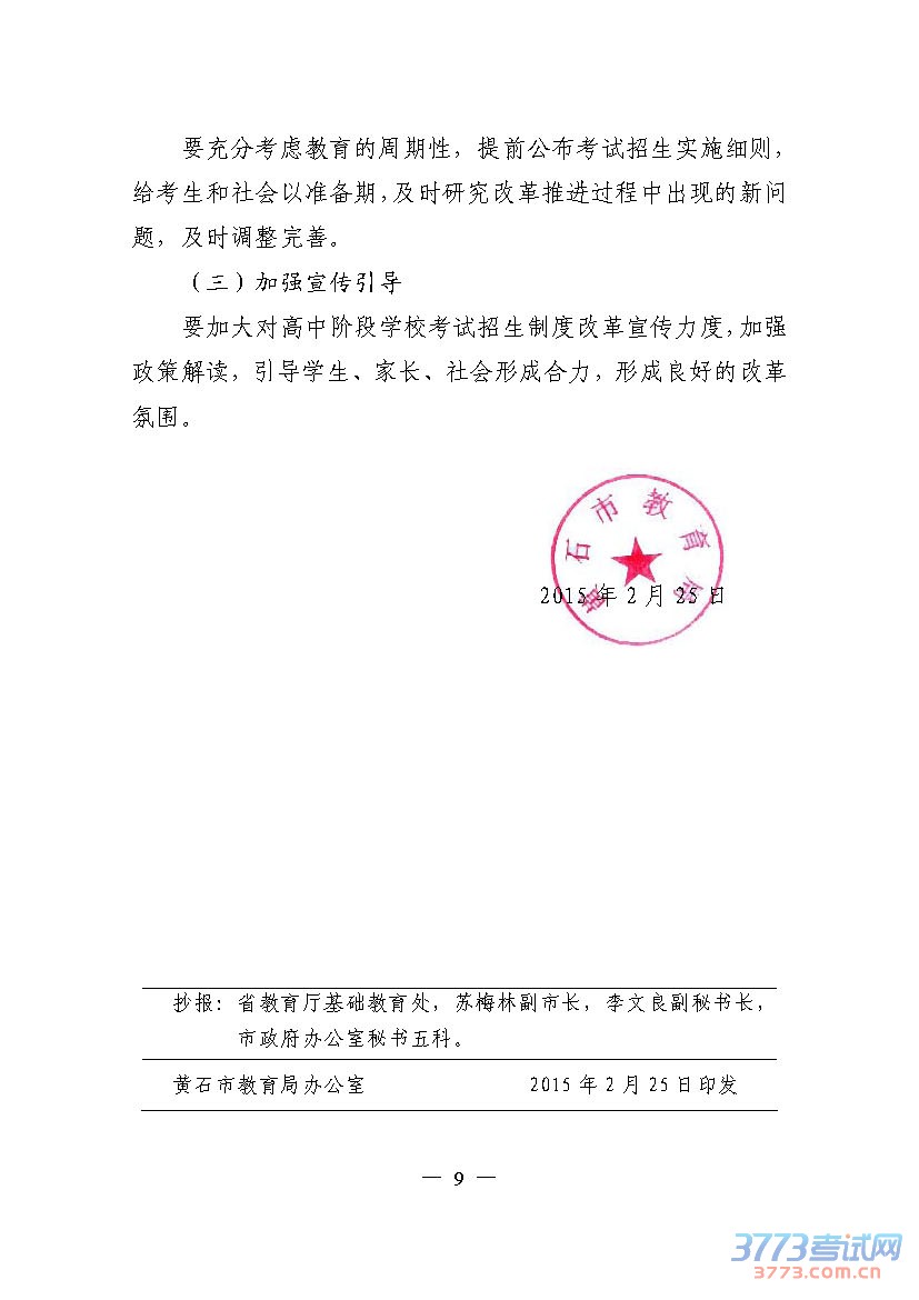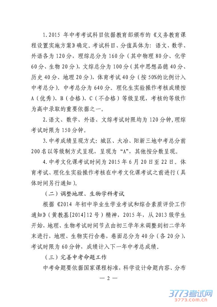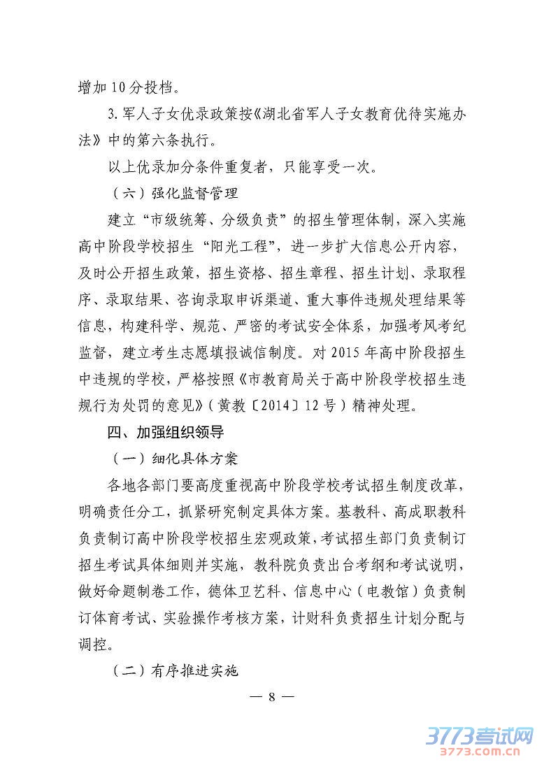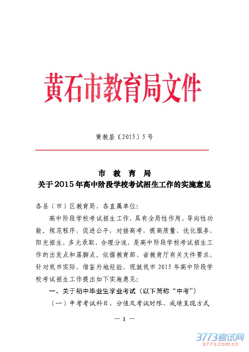 市教育局2015年关于高中阶段学校考试招生工作的实施意见