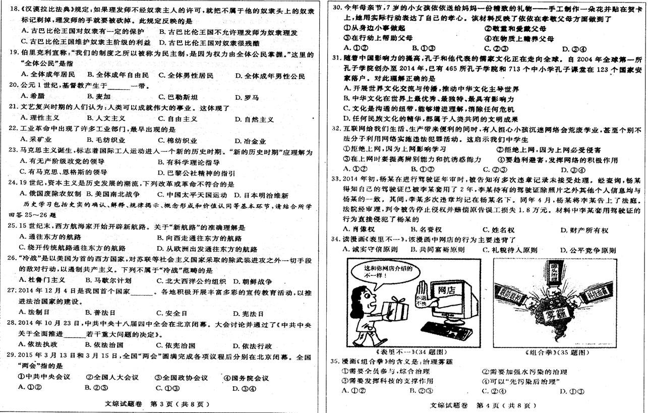 及时公布中考试题、答案和中考作文。祝各位考生都能取得好的成绩。2015年湖北黄石中考文综试题及答案(图片版):
