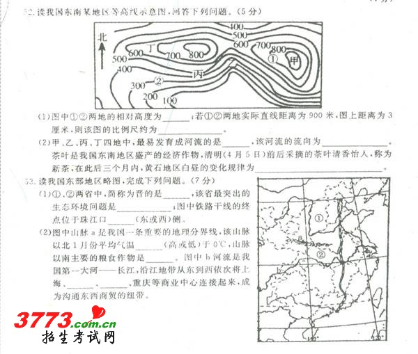 黄石市2012年初中毕业生学业考试地理试题答案及评分标准第Ⅰ卷 选择题 (每题1分,共8题8分。)1.A 2.D 3.B 4.C 5.C 6.B 7.D 8.A第Ⅱ卷 非选择题52.(5分)(1)500m 1:30000 (2分)(2)乙 自北向南流 先变长后变短 (3分)53.(7分)(1)① 水土流失 东 (3分)(2)低 水稻 南京 武汉 (4分)