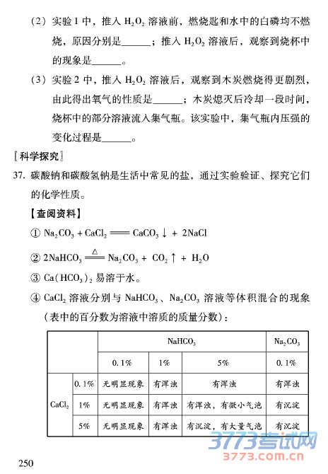 2016北京中考化学试卷参考样题及答案