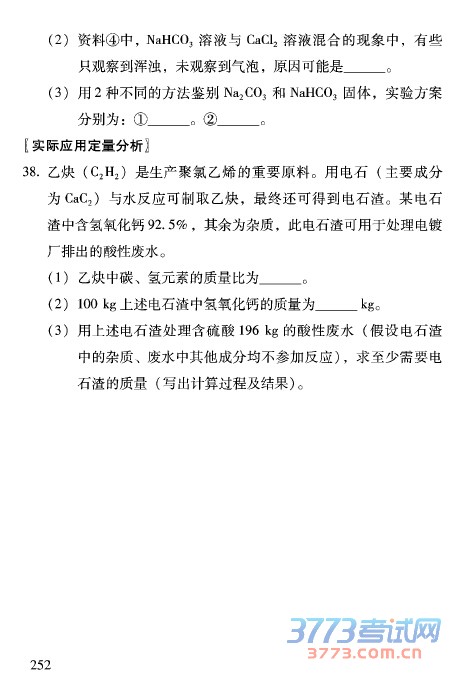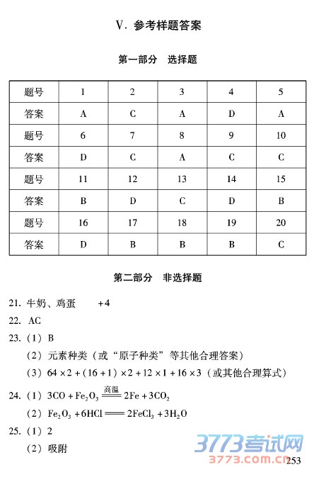 3773考试网 - 中考网 - 模拟题答案 - 化学 - 正文