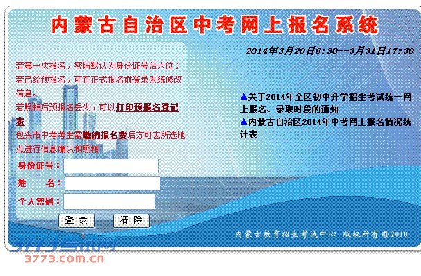 2014内蒙古中考网上报名系统入口 中考网上报名系统