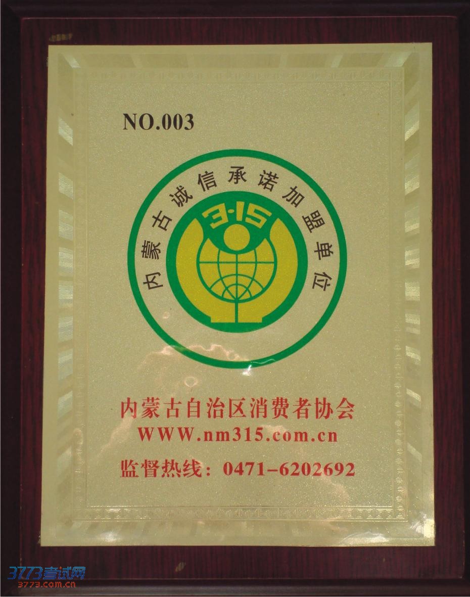 2008年,被内蒙古自治区消费者协会授予“内蒙古诚信单位”。