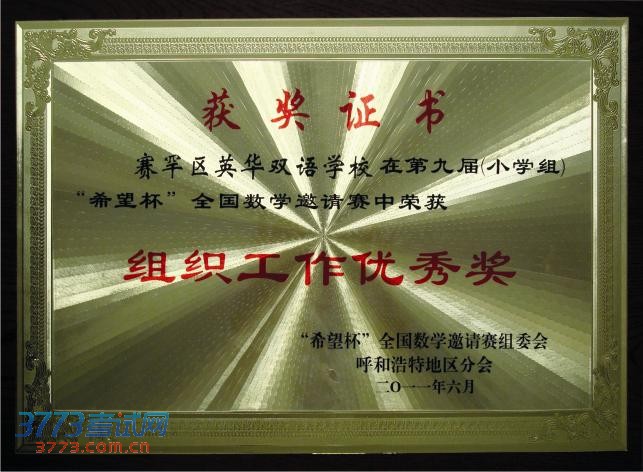 2011年6月,被“希望杯”全国数学邀请赛组委会授予“组织工作优秀奖”。