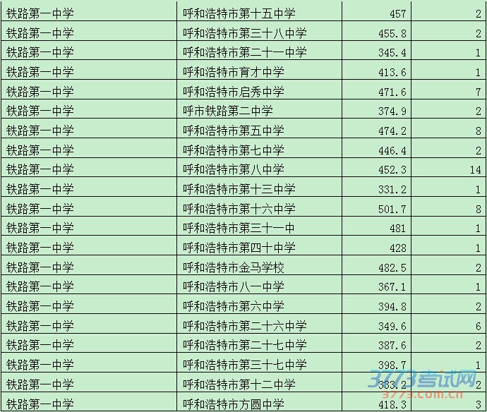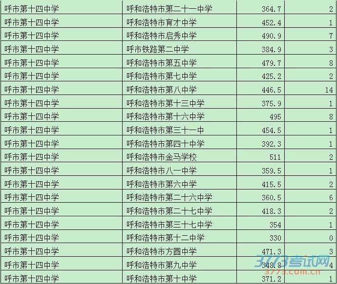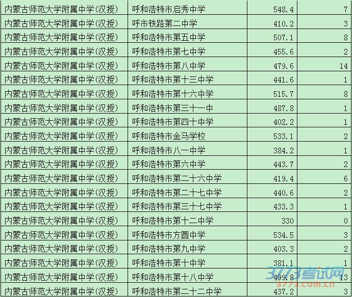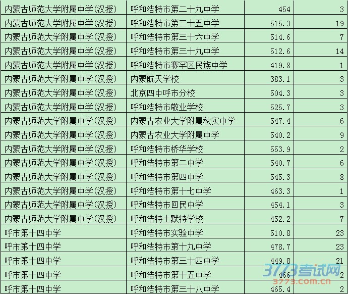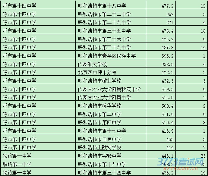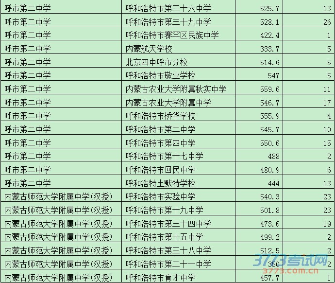 2015呼和浩特中考成绩10分段统计表(蒙授