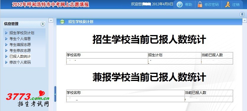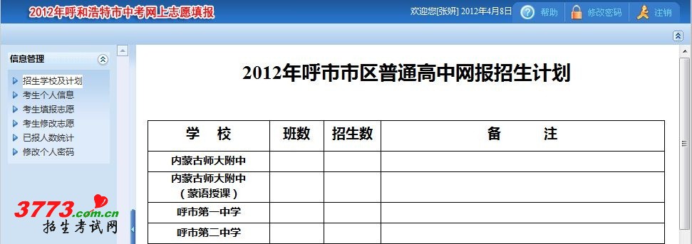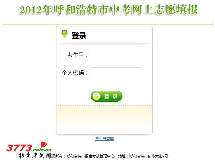 进入“2012年呼和浩特市中考网上志愿填报”页面;