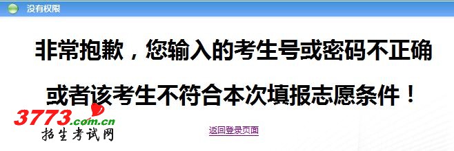 如考生输入考生号或密码不正确,或因本人户籍等条件不具有首次填报志愿资格,将弹出“没有权限”页面: