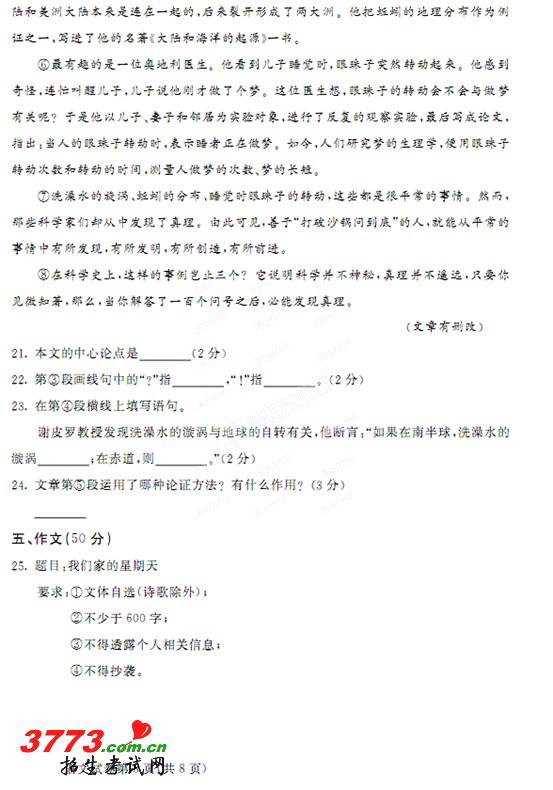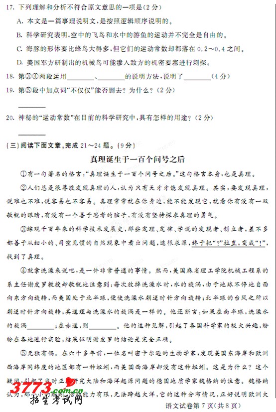 2012年内蒙古呼和浩特市中考语文试题及答案