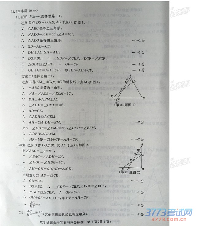 2015湖州市中考数学试题及答案