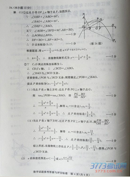 2015湖州市中考数学试题及答案