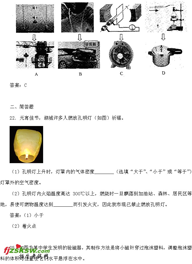 2011年湖州中考物理试题及答案