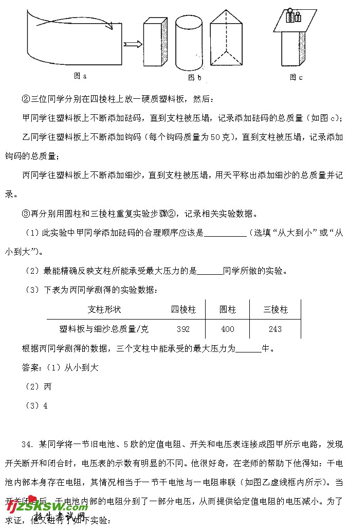 2011年湖州中考物理试题及答案