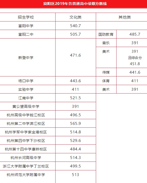 6月27日,富阳区教育局划定2019年富阳区各类高中招生录取分数线。普高最低录取控制分数线为411分,职高、技校最低录取控制分数线为160分。