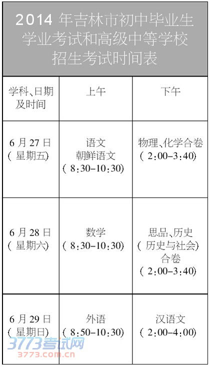全市中招统一考试时间为6月27日至29日。吉林市共设21个考点,共计802个考场。其中,城区设11个考点,有377个考场。