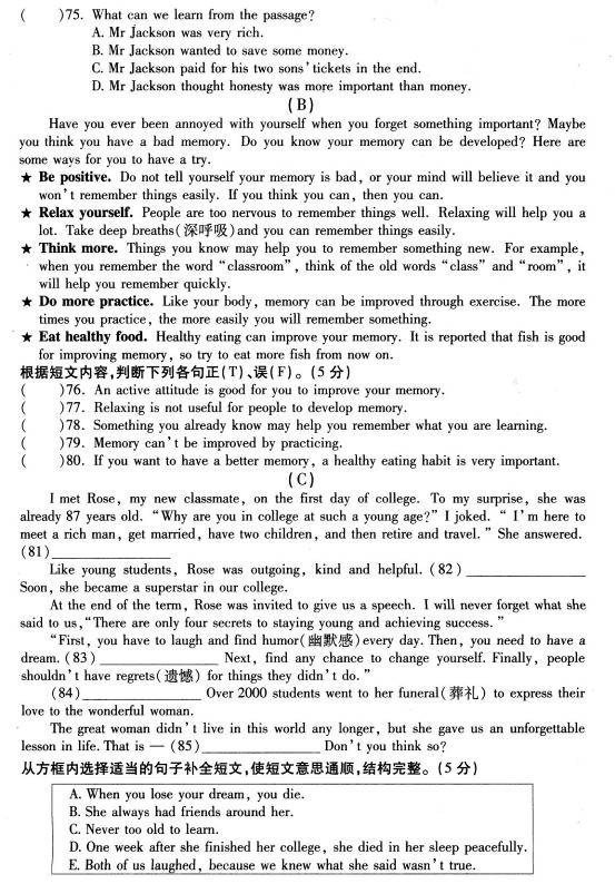 吉林2012年中考作文:歉疚和以唐山地震为背景