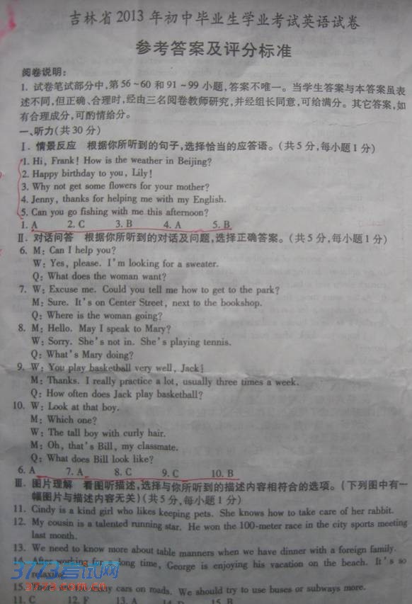 吉林省2013年中考英语试题及答案
