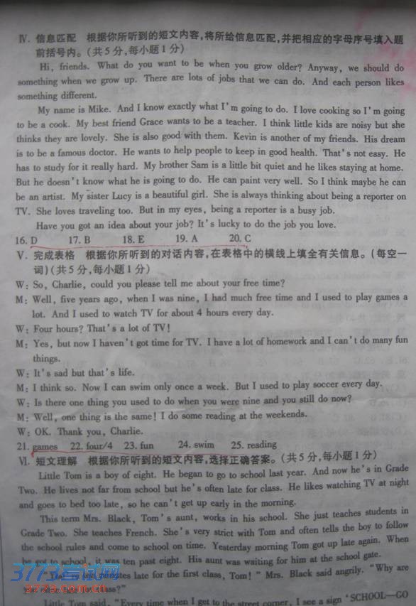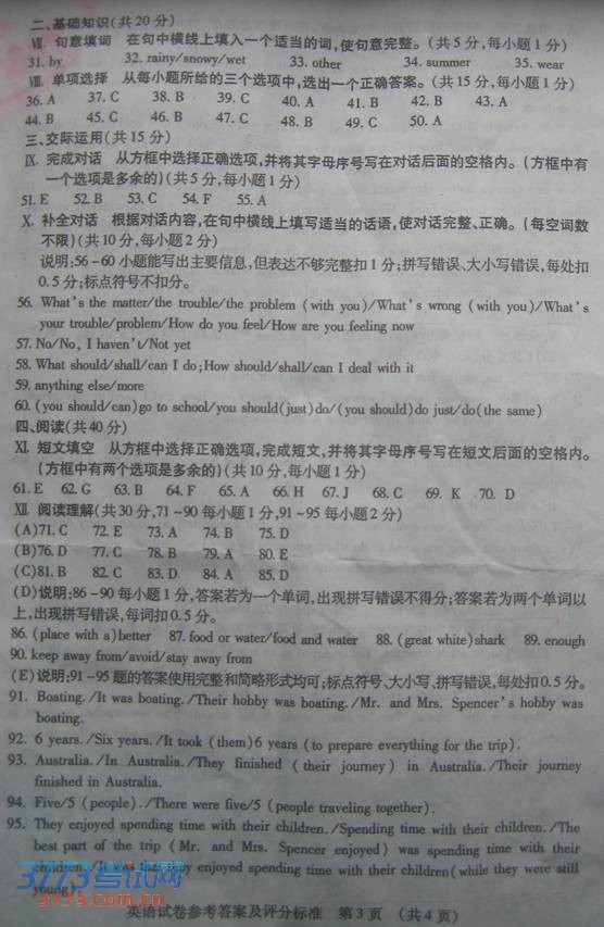 中考试题答案网