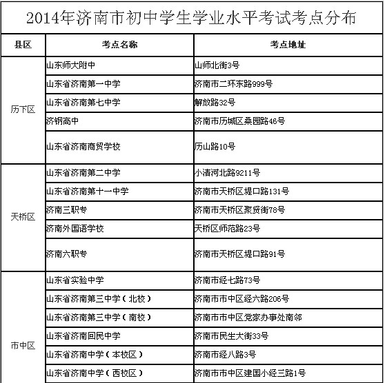 鲁网6月10日讯(记者 王文婷)2014年济南中考将于6月12日开考。记者今天从济南市教育局获悉,2014年初三学业水平考试报名人数为63841人。今年济南共有48个考点,其中市区考点共计25个,包含历下5个考点,天桥5个考点,市中7个考点,槐荫2个考点,历城5个考点,高新1个考点。