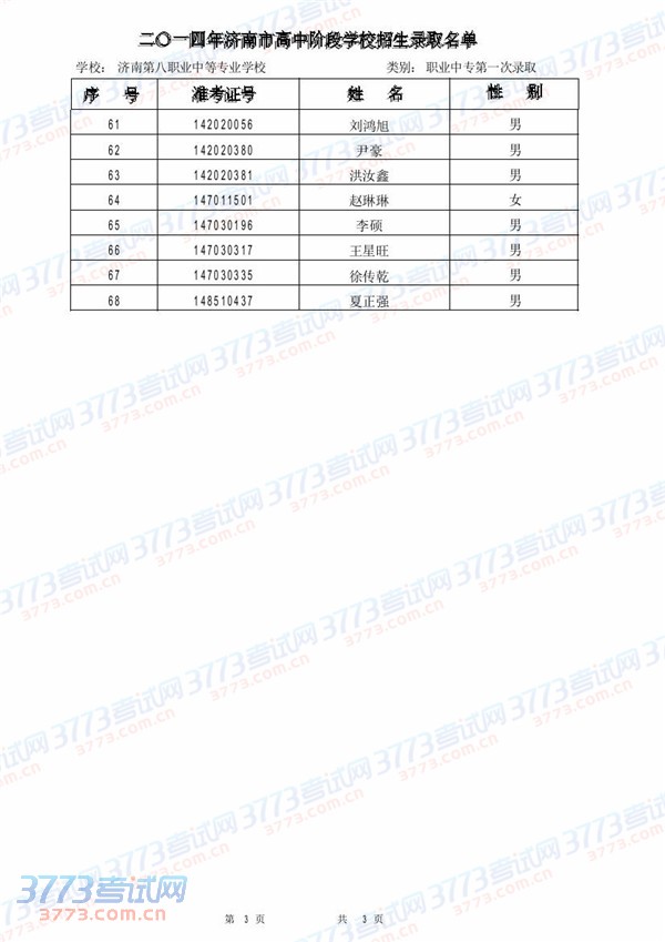 2014济南职业中专与技工学校招生第一次各校录取名单
