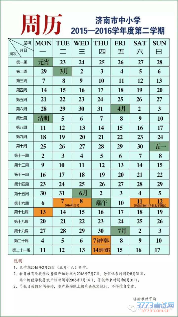 2016年新学期校历出炉,济南2016中考年中考时间确定,为6月11日6月12日、6月13日三天。