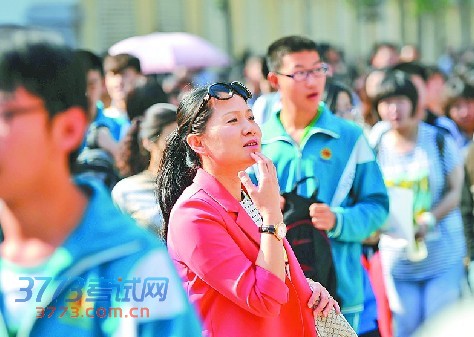 在山东师范大学附属中学考点,一位考生家长目送孩子进入考场。(张刚 摄)(资料照片)