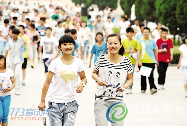 走出考场的考生,面带笑容,神情轻松。 记者 高云 摄