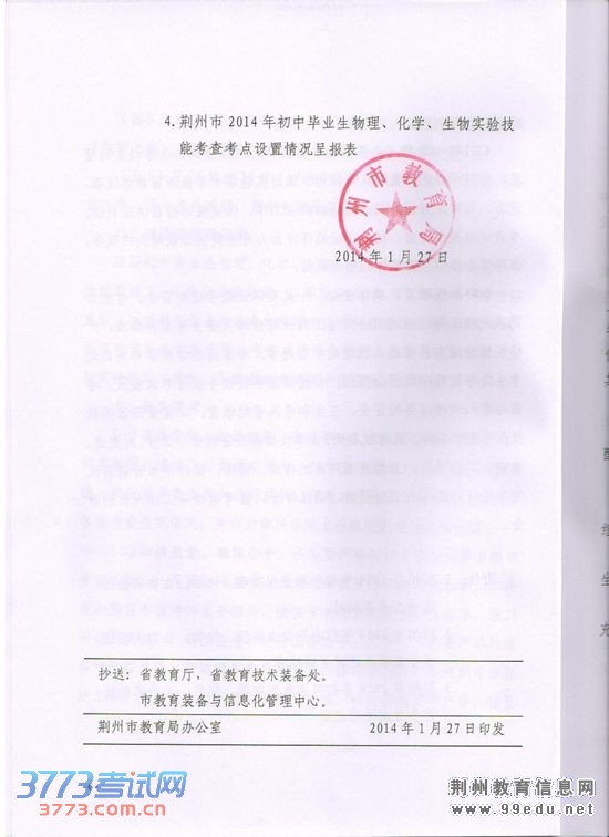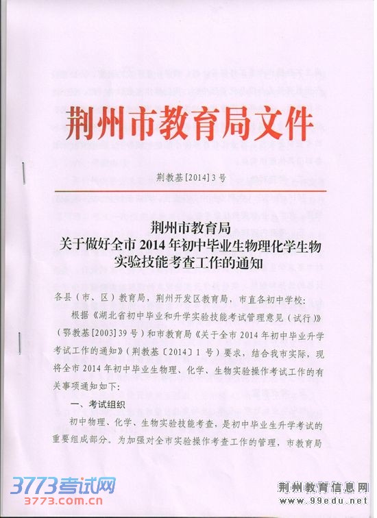 2014荆州初中毕业生物理化学生物实验技能考查工作通知