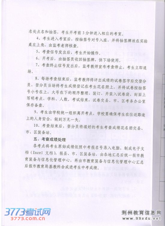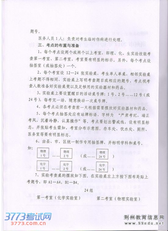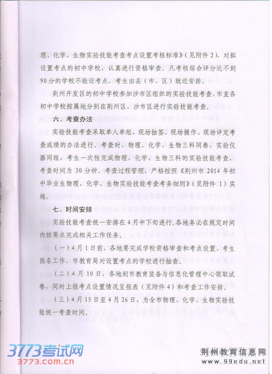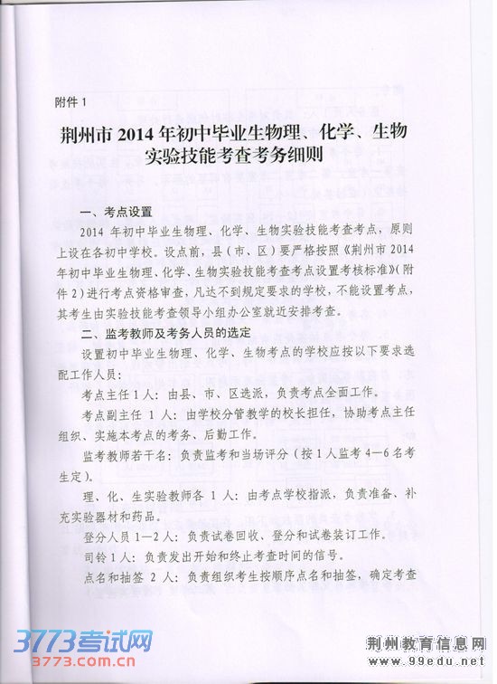 荆州市2014年初中毕业生物理化学生物实验技能考查考务细则